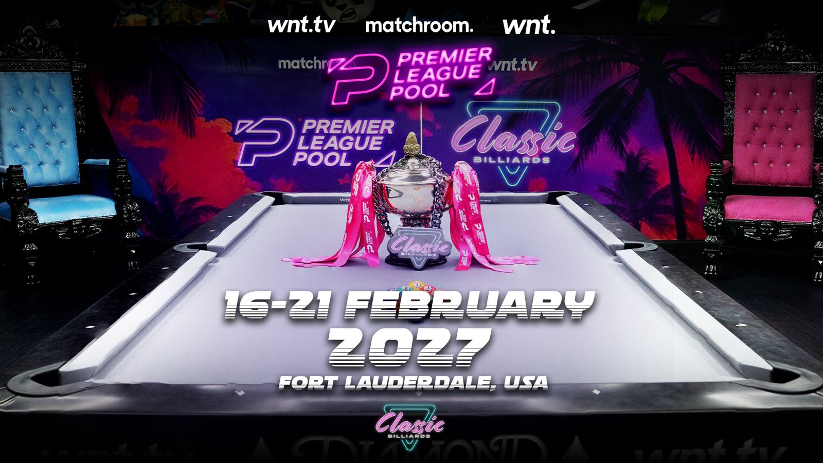 Premier League Pool returns to Classic Billiards in Miami, Florida from 16–21 February 2027, as 16 of the world’s elite players head back to the Sunshine State to compete for one of the sport’s most iconic titles.