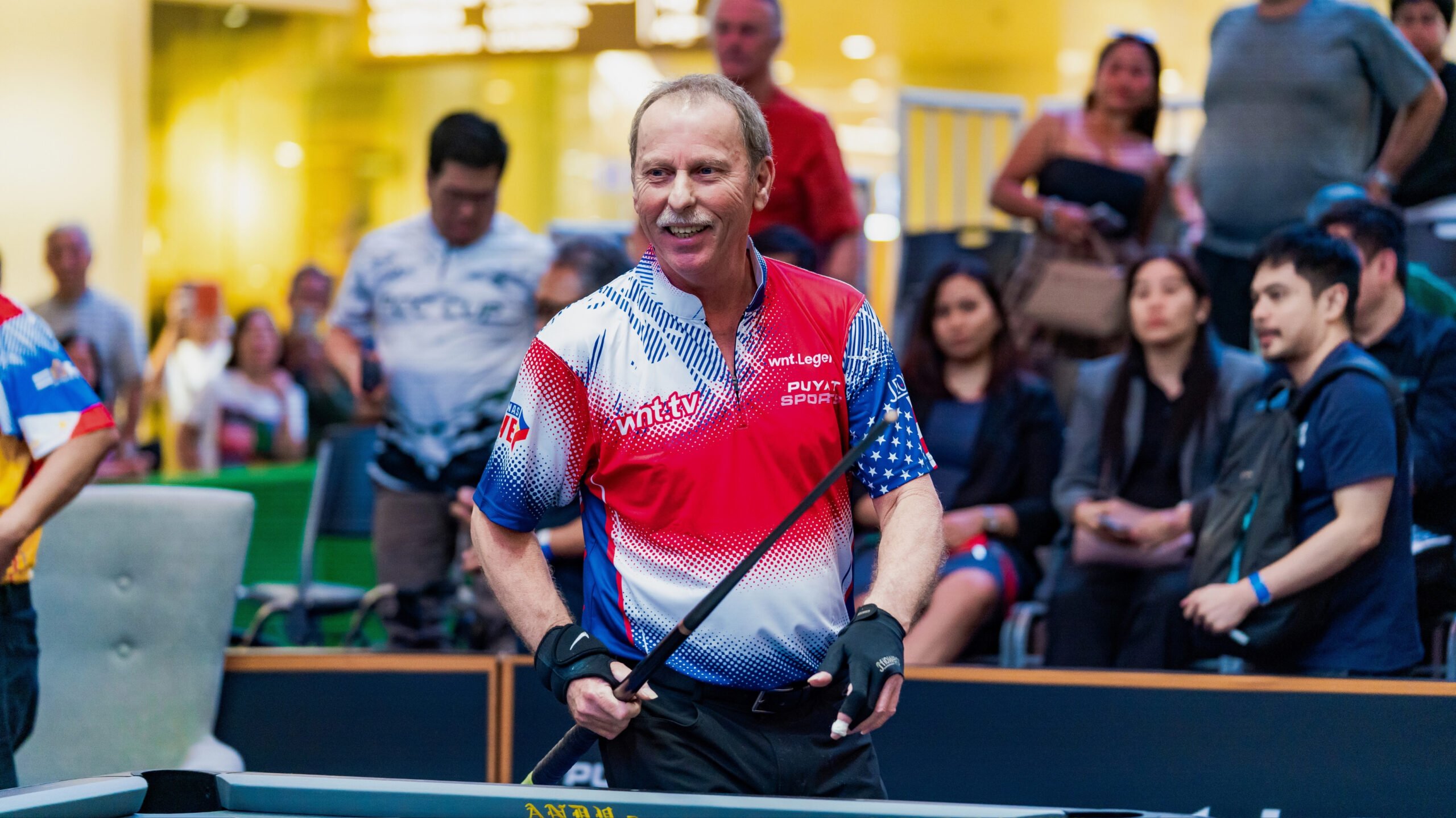 USA took the final two points of the day as Billy Thorpe and Skyler Woodward teamed up to defeat Niels Feijen and Alexander Kazakis before Van Boening, who had opened the day, returned to face Kazakis in the afternoon’s closing match. The home crowd were full of hope that their star man would level the tournament at 5-5 and they weren’t disappointed.